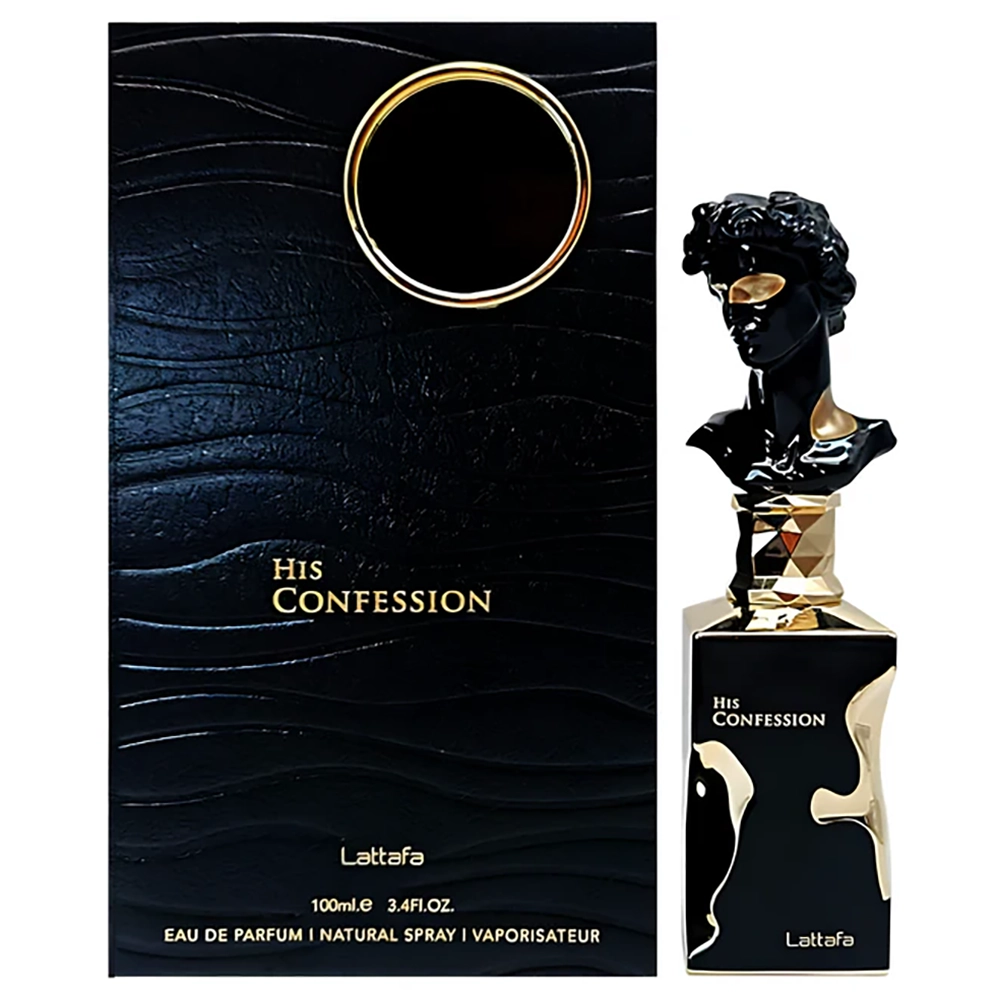Lattafa His Confession 3.4 Oz Presentation by Lattafa Perfumes is a Oriental Woody fragrance for men. This is a new fragrance. His Confession was launched in 2024. Top notes are Cinnamon, Lavender and Mandarin; middle notes are Benzoin, Iris, Mahonial and Cypress; base notes are Vanilla, Incense, Tonka, Patchouli, Cedarwood and Amber.